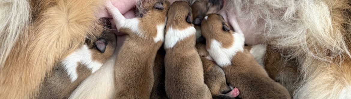 Dňa 7.3.2026 sa v našej chovateľskej stanici 1 narodil nový vrh dlhosrstých kólií! Máme 7 zlatých šteniatok – 4 psíkov a 3 sučky. Viac o vrhu nájdete v sekcii odchovy- vrh F.